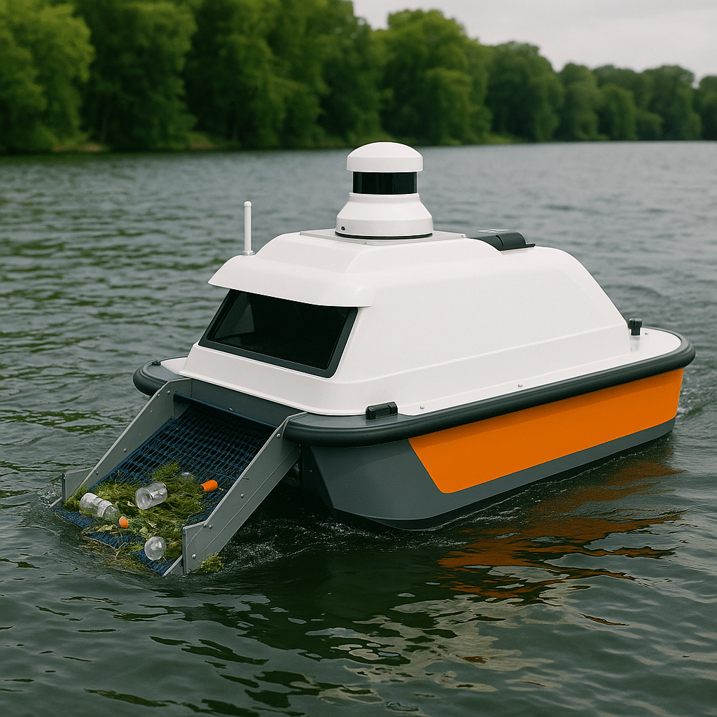 L’innovation repose sur un système intelligent de propulsion et de guidage, permettant au robot de se déplacer efficacement sur l’eau tout en collectant, stockant et évacuant automatiquement les déchets flottants.